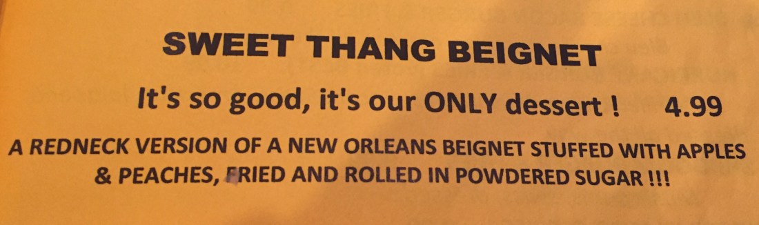 They describe themselves as “A Funky, Junky Redneck Joint where the locals love to eat.” Sounded like a good endorsement to me.