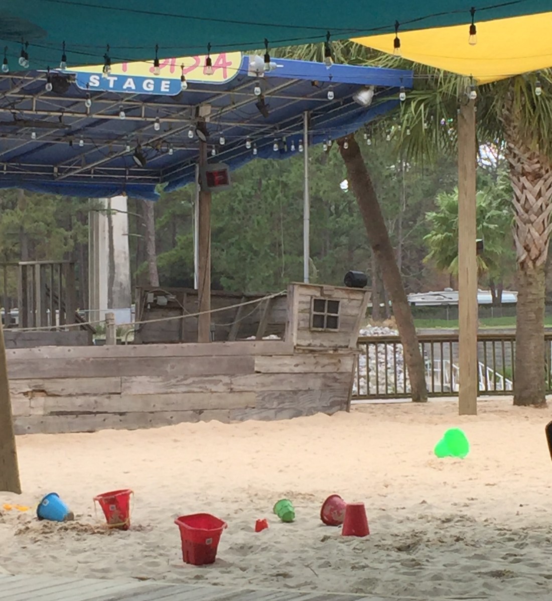 When we arrived at LuLu’s in Gulf Shores there was quite a crowd and we had a fifteen minute wait for a table, which wasn’t bad as there are a lot of walking boardwalks. Part of the wait, I believe, was because they don’t have all the tables available this time of year. That’s totally understandable.