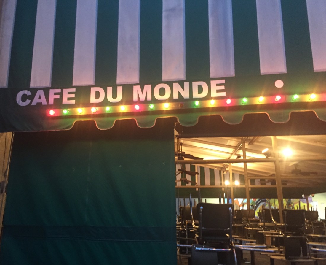 The original Cafe Du Monde Coffee Stand was established in 1862 in the New Orleans French Market. The Cafe is open 24 hours a day, seven days a week, serving coffee and beignets. Beignets were brought to Louisiana by the Acadians. These were fried fritters, sometimes filled with fruit. Today, the beignet is a square piece of dough, fried and covered with powdered sugar.