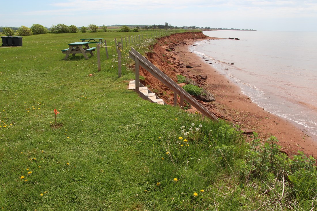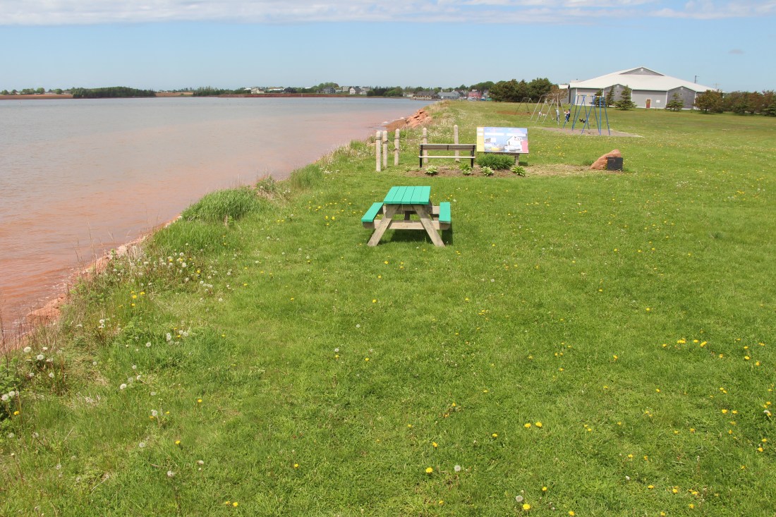 This beach is 32 min. from Charlottetown, 25 min. from Borden-Carleton, and 39 min. from Summerside. We happened to be here during high tide so we didn’t really get to observe the full beach. It’s quite a spacious park with lots of grass so it’s great for kids to run around and play and has two picnic shelters which makes it ideal for a multi family get together. It’s a nice spot to pull out your camp chair and sit along the bank and read, have a tea, or just enjoy the view. We spotted several people doing just that. A young couple were just leaving as we arrived and we saw someone having a walk on the beach. Again, nice to see it being enjoyed.