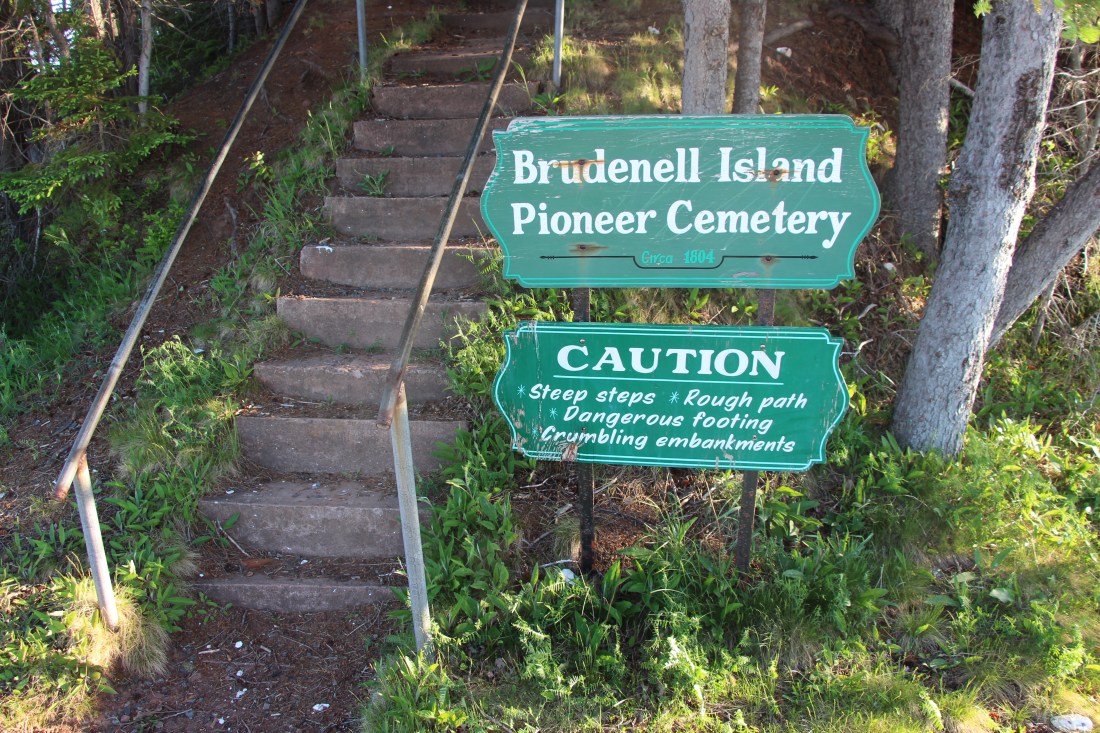 We walked over a connecting causeway to Brudenell Island and visited the pioneer cemetery. The cemetery consists of sandstone grave markers and a large commemorative monument which was erected in 1903. Beware of mosquitoes.