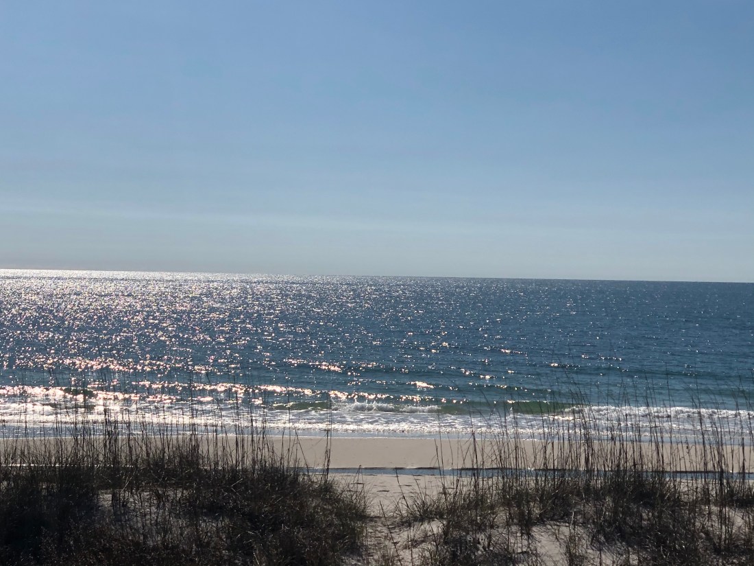 These were my views this morning as I sat reading on the deck after breakfast. Don’t get tired of that view of our beach.