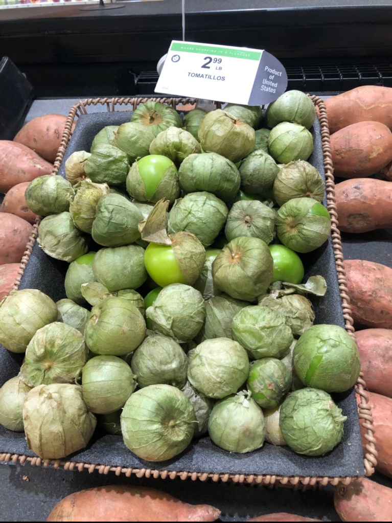 In the grocery store we had seen these: tomatillos. Intriguing.