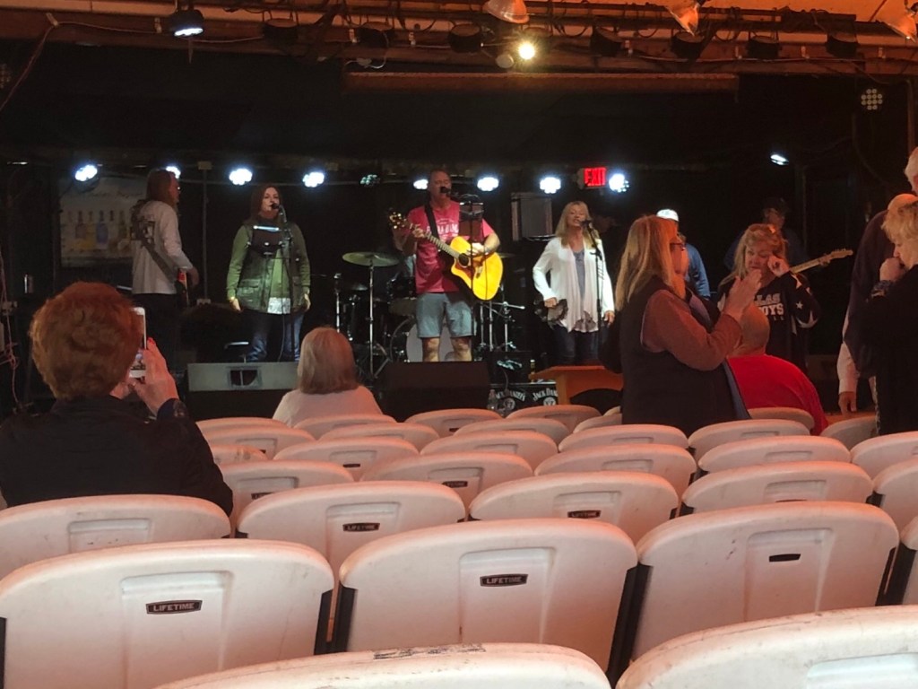 We came to a service a couple of weeks ago but arriving at 8:30 for the 9:00 service left us too late to get a seat in the main section. We could have watched it on a big screen tv in the bar but we opted to come back another Sunday. As we were leaving, the man at the door recommended we come at 8:00 next time if we wanted a good seat.