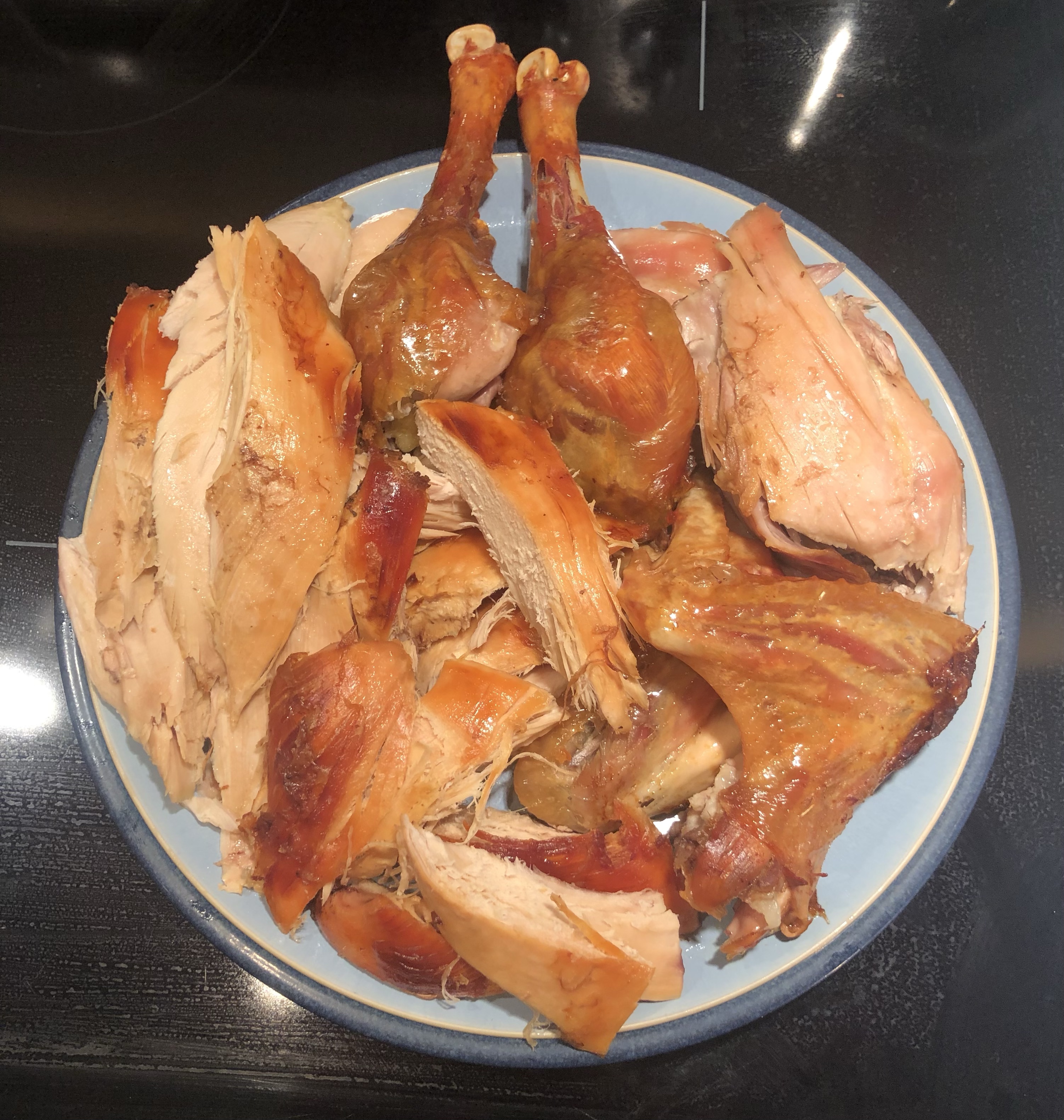 My big downfall is that I’m not great at carving the chicken but no matter how it’s carved it still gets enjoyed.