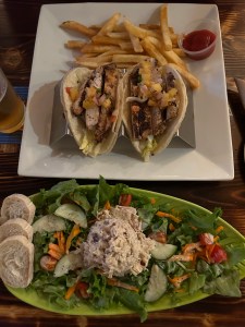 Richard’s was the tacos. I commented that there weren’t many fries but he said there were too many for him. Cause they were awful. Not crispy. The tacos were not great either. Nothing you could really put your finger on but just kind of blah.