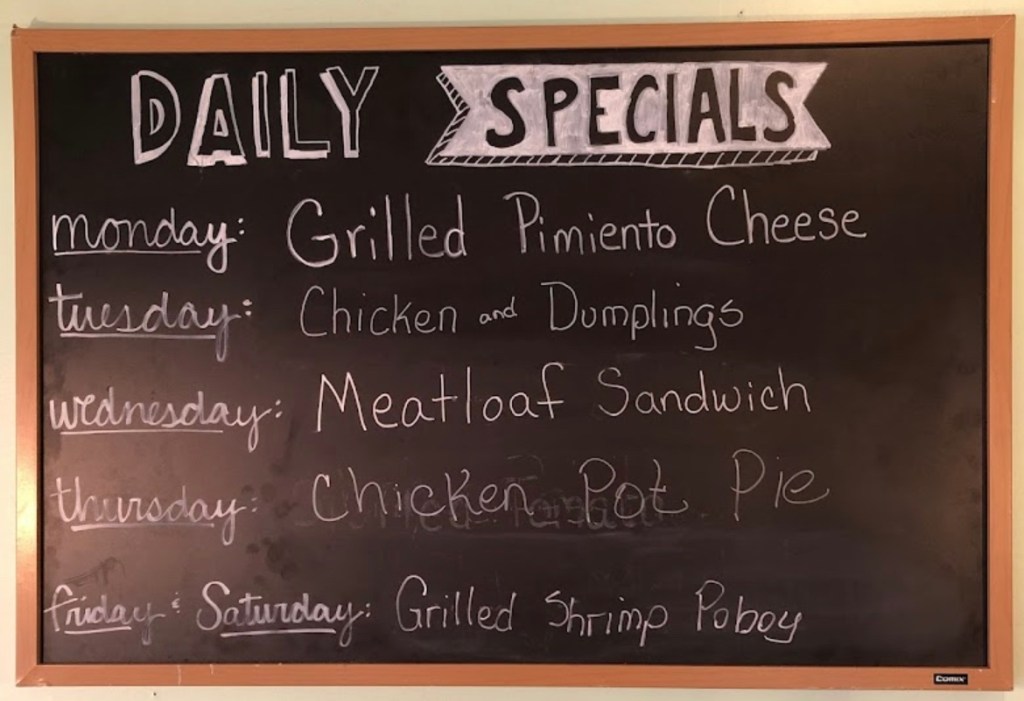 Fairhope https://en.m.wikipedia.org/wiki/Fairhope,_Alabama. Kind of our typical routine. I did some morning shopping and again I scored some nice items from the various consignment stores (a top, a dress, and a purse). Richard got records from the local record store. So much fun. For lunch we went to Sandra’s Place, a unique little sandwich + shop.