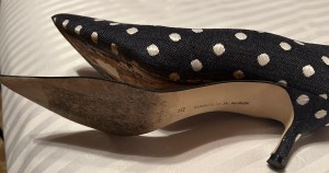Now here’s where the unpredictable happened. Since it was my birthday i wanted to dress up for dinner so I brought a dress and my oh so amazing shoes and most likely the only Manolos I’ll ever own (a previous Christmas present from my daughter and son-in-law). The shoes look great and are also comfortable. Now that doesn’t always happen. All dressed up and was walking down the hall, oops the B&B calls it the Great Hall. Then the unthinkable happened. The sole of my left shoe started flapping. The glue had come undone. Insert crying here. Thank goodness I had the foresight to pack a pair of wedge sandals. Whew. Disaster averted.