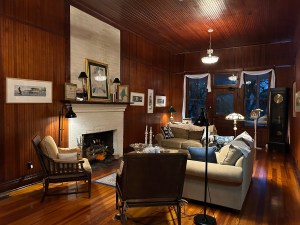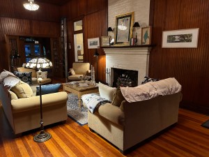 We entered into why they call the Great Hall. We had reserved the McLennan Room as it was on the first floor and had a king bed. When traveling I like a king. What a lovely room. Rooms always look especially fresh when they have crisp white linens and this one didn’t disappoint. The bed was very comfortable. Firm but soft too if that makes sense. My only complaint would be the pillows. Very big and thick. But so thick that my neck was at an uncomfortable angle when sleeping. Not the worst I’ve ever slept on. Should have remembered our own pillows. Cute little sitting chairs and comfortable for me as I’m so short. I like sitting in a chair, not on the bed. The bathroom was darling with its claw foot tub. And yes I did try it. So big. And they had bubble bath. Sweet. Felt heavenly.