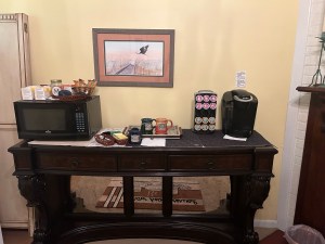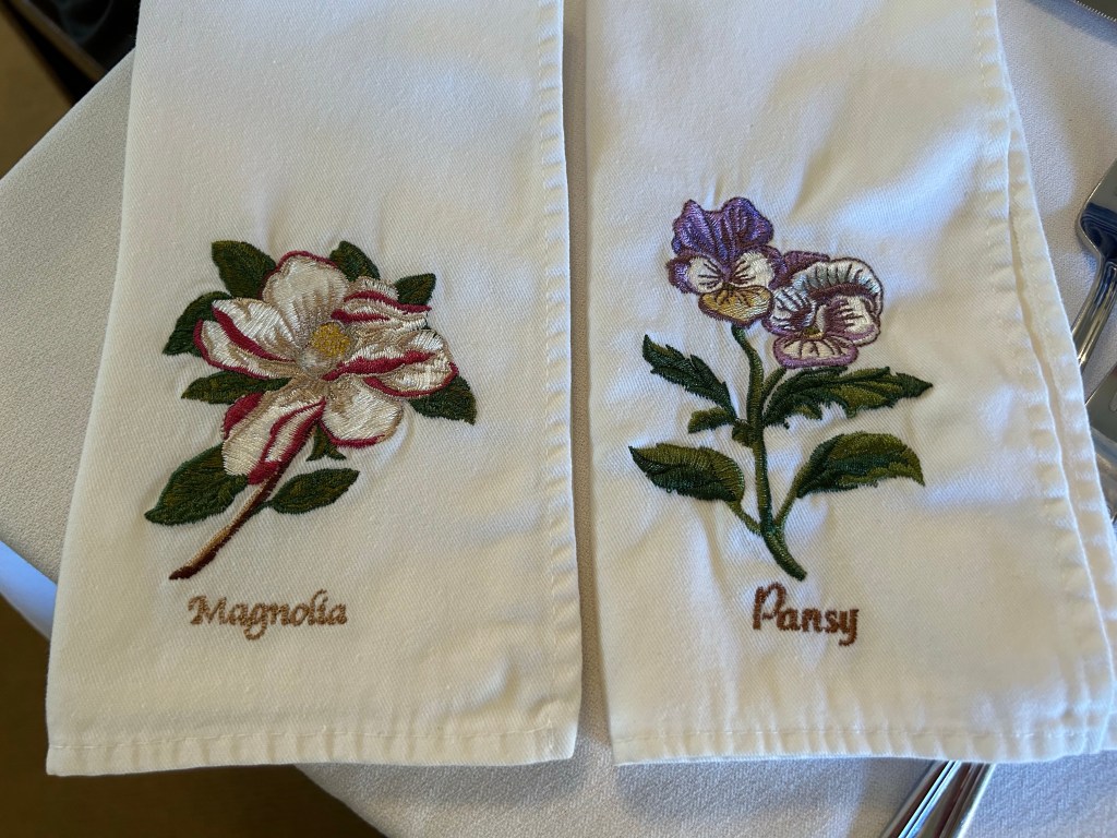 Up in the morning and off to the dining room for breakfast. Oh my Oh my Oh my. Hands down this was the tastiest breakfast I’ve ever had at a B&B. Well done guys. And served by the friendly owners/hosts David and Eric. I especially loved how they described each item including all the ingredients used. They go out of their way to make everything healthy and tasty. Wow. Totally achieved this. All items were absolutely delicious. Best grits I’ve had in Alabama. I’ve never previously enjoyed grits but these I did. Richard is very particular about his coffee and he had two cups. Now that said something. He thought it was very good. And what an additional cute touch with the serviettes. Loved them. So appropriate. And did I mention I love crisp white linens? Tables covered in crisp white tablecloths. Ahhhhh.