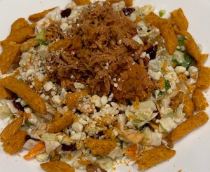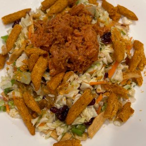 For the base we used a bagged Asian salad by Fresh Express. Love this salad. It’s delicious. Our finished salads look better in real life than in the pictures.