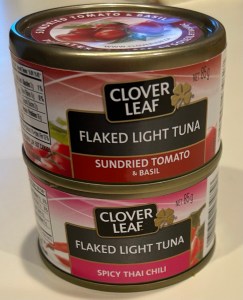 I enjoy hot and spicy and this canned tuna, Spicy Thai Chili, is very spicy. Too spicy for Richard so he enjoys Sundried Tomato and Basil.To this we added some walnuts, sliced almonds, ginger pieces, blue cheese (only to Richard’s – I detest it), and Tomato Basil Baked Red Lentil snacks. We discovered these down here and really like them. Plus they’re gluten free. Yay! They’re great as a snack or a salad topping. I find that adding a few extras increases the “yummy” factor.