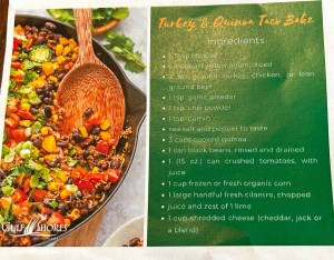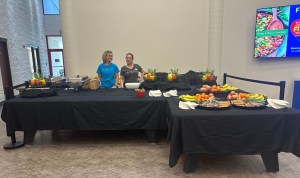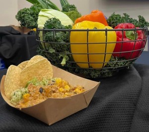 A Food Court was set up with fresh fruit, granola bars, and a small meal of Green Goddess Salad and Turkey and Quinoa Taco Bake.