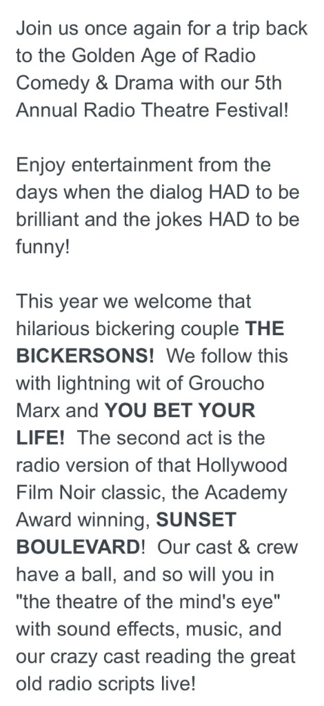 In my last post I mentioned that I took a leap and I auditioned for a local production. I’m always nervous, before and after. After waiting and waiting and waiting for a phone call and not receiving one I figured that was it. No part for me. You can imagine how surprised and excited I was to receive the call this afternoon. Woo Hoo! I got a part. Norma Desmond in Sunset Boulevard.