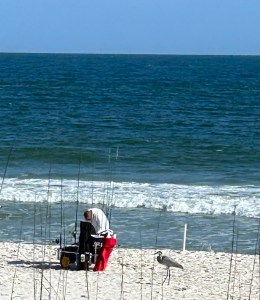 Our local heron, George, has been around more often this last week. Might possibly be the lure of some spring breakers fishing and he’s hoping for a fish.