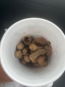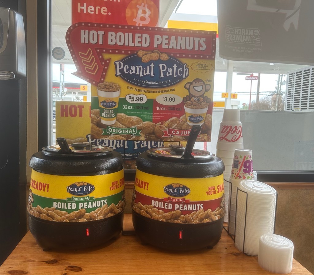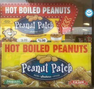Richard has been obsessed with trying boiled peanuts. Today I saw this on the outside window at a Shell.