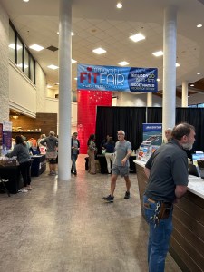 Today was The 10th Annual Community Fit Fair +Wellness Open House at the Bodenhamer Recreation Center. It’s our gym so it was easy to attend plus we got the benefit of doing our regular yoga and gym workouts. What’s great was it was open to the whole city, not just gym members, so others could partake in the free classes and the information displays. They also had a room set aside for health screenings (balance, blood pressure, etc.) and a place for donating blood. Covering the bases of self care.