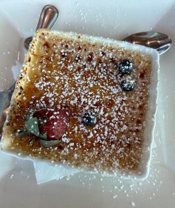 I forgot to take entree pics but remembered the most important one. Richard’s favourite dessert here. Crème Brûlée. Again. He loves it.