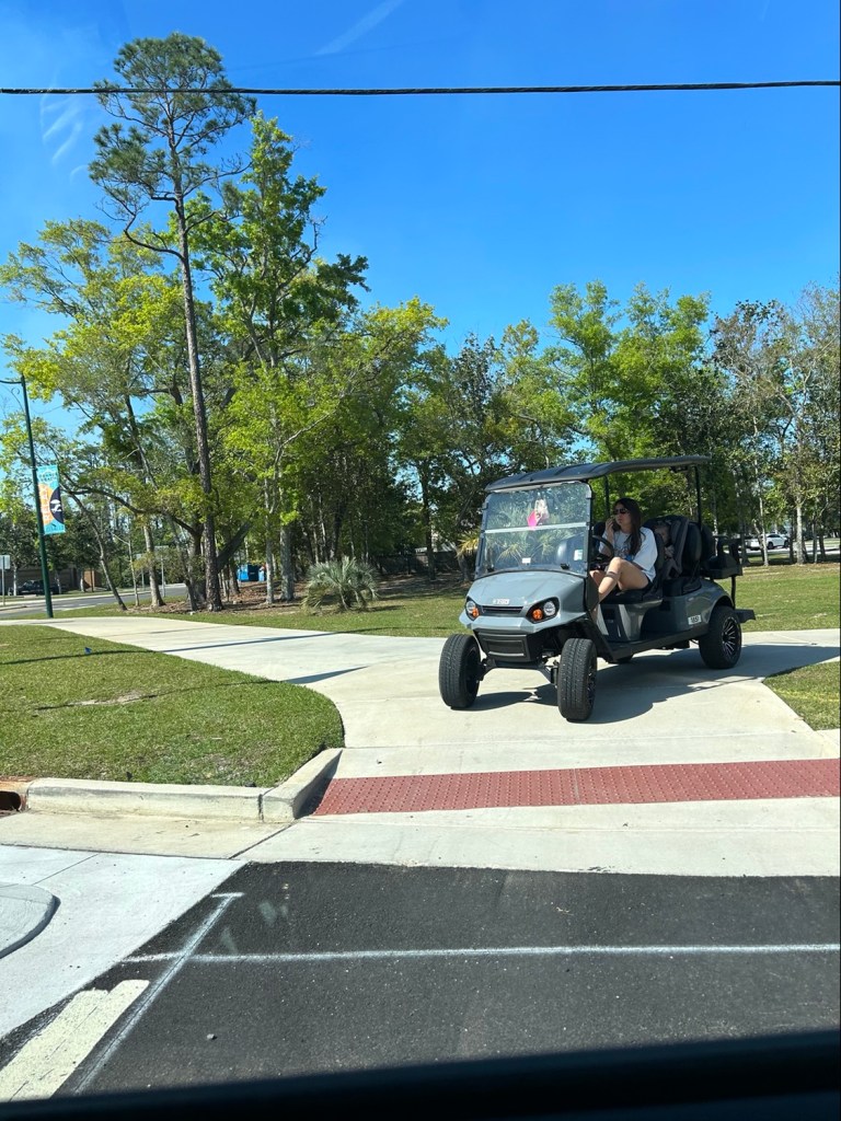 This last month we’ve been in a condo in Orange Beach. We’ve seen a lot of these but never saw them in Gulf Shores. Some people own them but they are also available to rent. We’ve seen two seaters up to seven seaters.