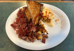 When the man who brought our food to us came back to see how everything was I told him how delicious the raisin bread toast was. (I think they coat the crust in brown sugar.) He laughed and replied, “We know.”
