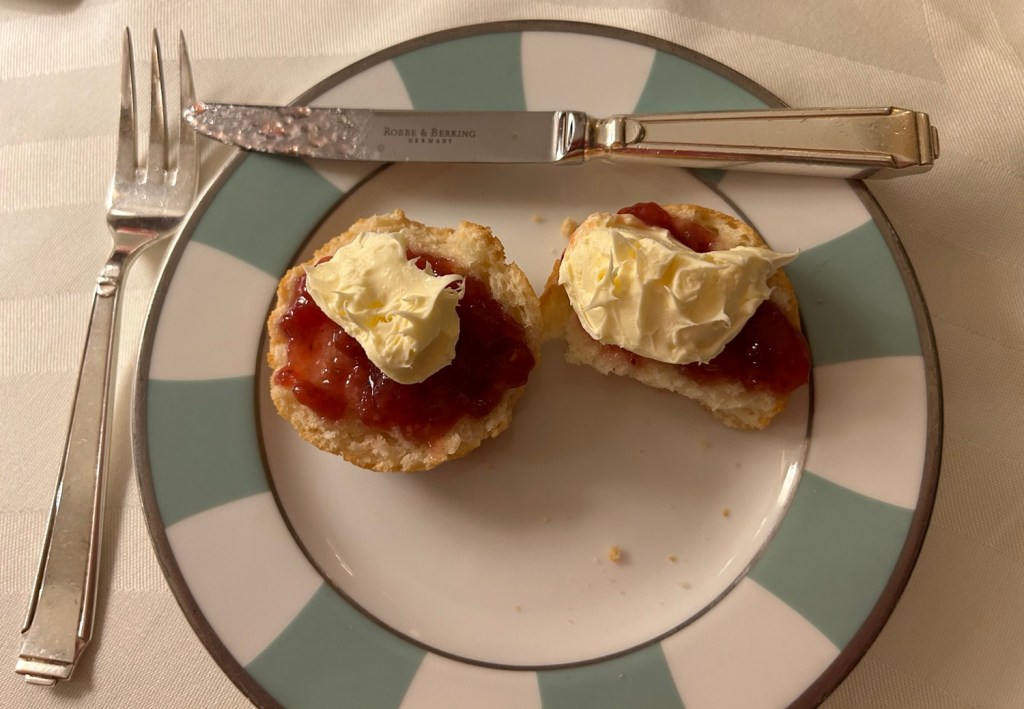 I couldn’t imagine a better High Tea. Champagne. Sandwiches. Scones with jam and clotted cream (to die for) and sweet pastries. Even brought Kathryn a plate of vegetarian sandwiches and sweets. Unbelievable.