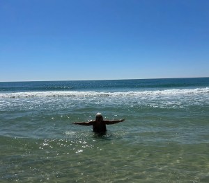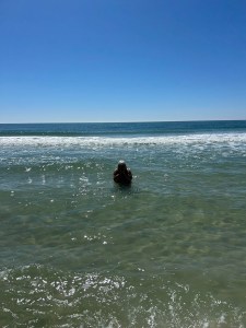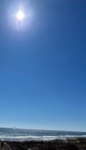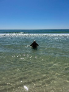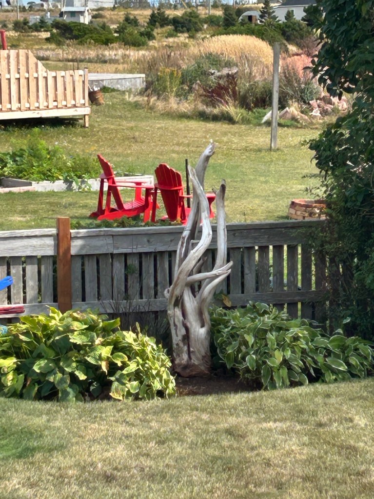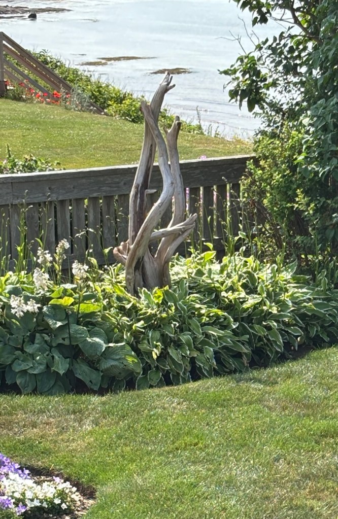 Richard’s son and family visited in July. They immediately became avid beachcombers. The oldest boy found a huge driftwood piece and dragged it all the way down the beach and back to the house ‘cause he thought I’d love it. (What a sweet guy to do that.) He was correct. I do. What a fabulous addition to the garden.