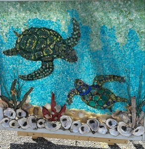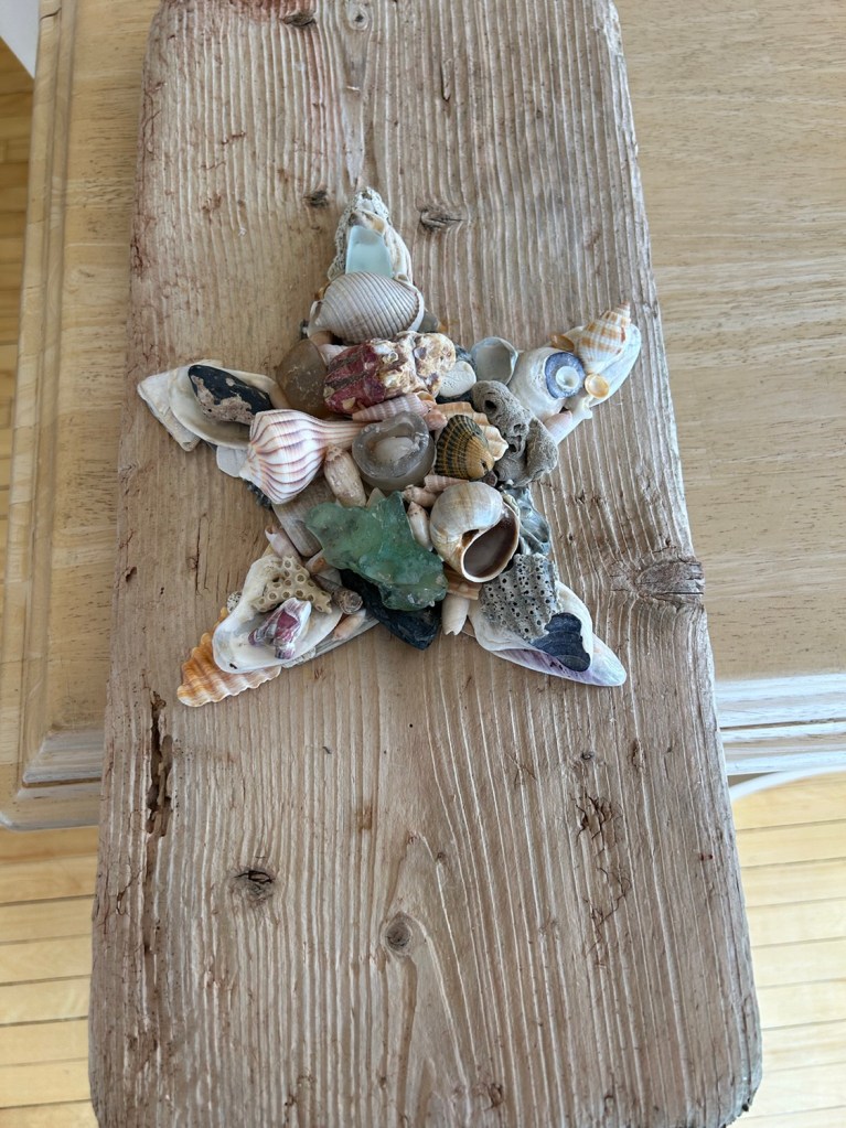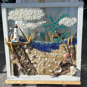 Finding flat driftwood and having an abundance of shells from here and Gulf Shores inspired the next two. if you click on them to enlarge you’ll see I also used some large sea glass pieces.